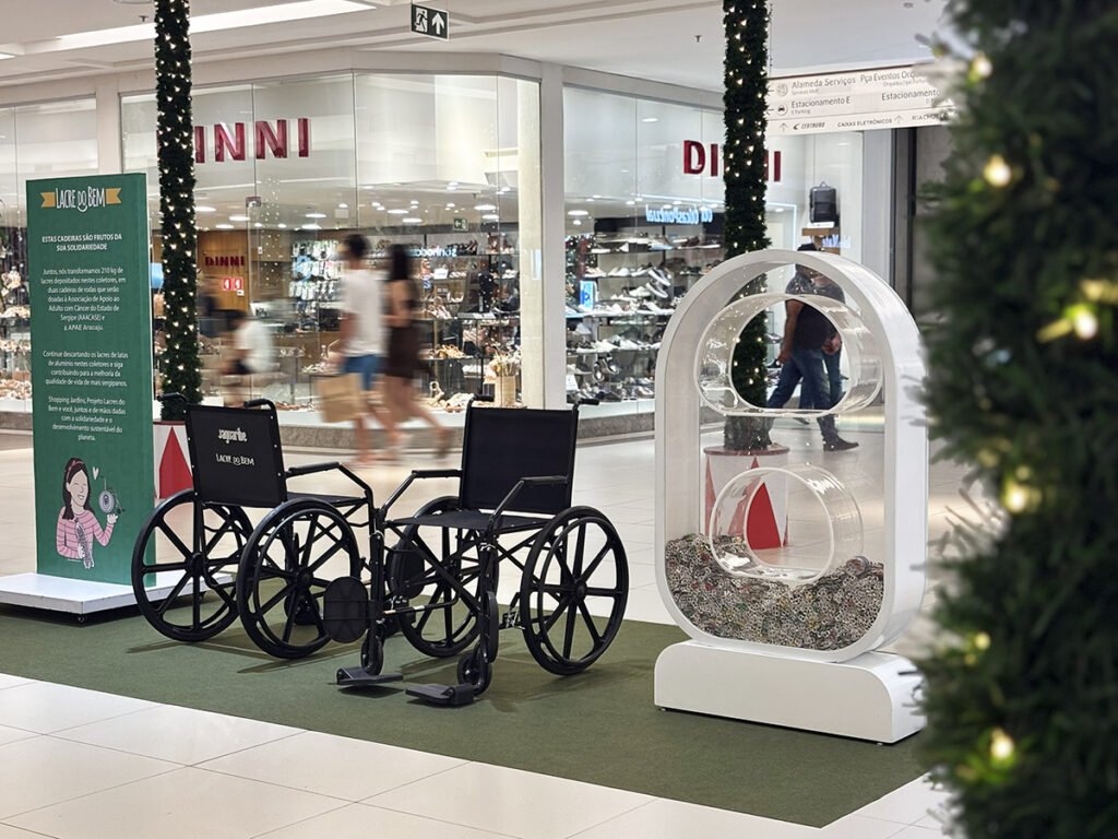 Uma iniciativa do Shopping Jardins, em parceria com o Projeto Lacre do Bem, está beneficiando pessoas com dificuldade de locomoção, além de promover o desenvolvimento sustentável. Em mais um ano, a ação acabou de arrecadar 210 quilos de lacres de latinha, que foram convertidos em duas cadeiras de rodas. Agora, os equipamentos serão doados à Associação de Apoio ao Adulto com Câncer do Estado de Sergipe (AAACASE) e à Apae Aracaju.